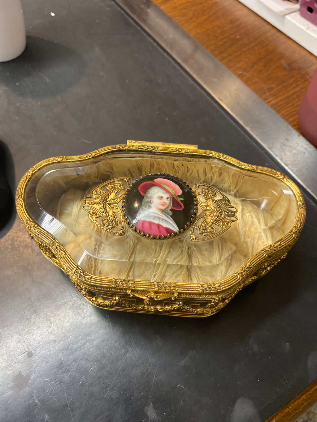 Antique French Ormolu + glass jewelry casket ( late 1880s)