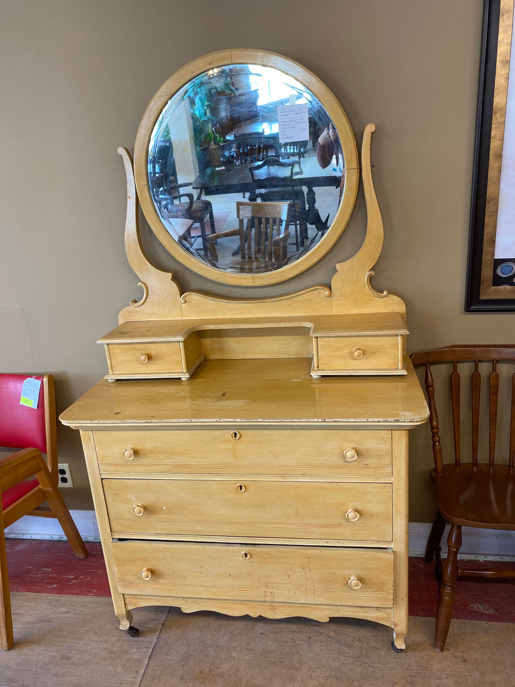 Cute light wood dresser / mirror
